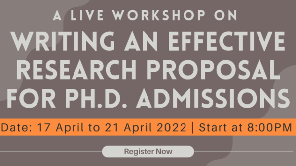 | A Live Interactive Workshop On Writing Effective Research Proposal For Ph.D. Admissions (Introduction Video) (19:00) | |||